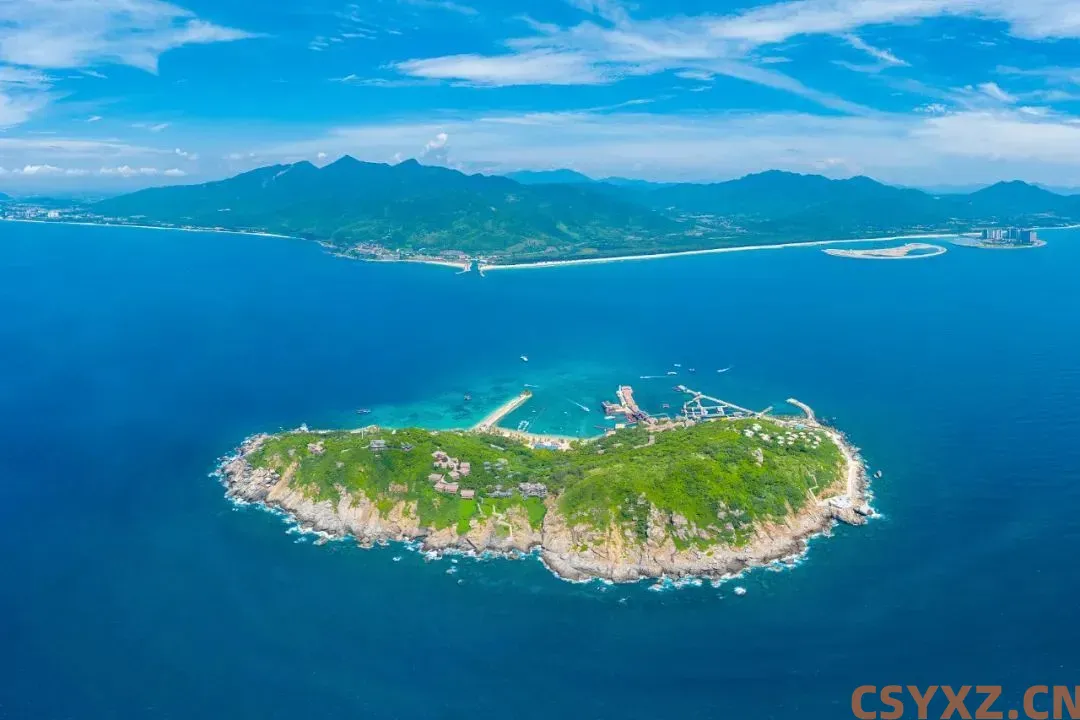 海天万顷之间一座绿色的小岛,面积仅仅0.41平方公里。放眼望去,像是海洋里发亮的翡翠。东经110度2分,北纬18度5分,这也是陵水的坐标。以岛为界线,海南岛南北之间气候、人文,有了不一样。同时,它还是陵水与万宁之间的行政分界线。