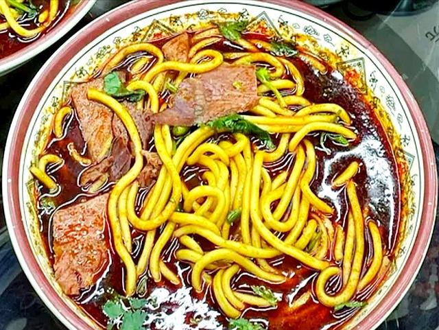 临汾的牛肉丸子面是个狠角色。碱面条筋道,牛肉丸弹牙,再配上酥脆的麻花,浇上红艳艳的牛肉汤。辣椒放得那叫一个实在,吃得人额头冒汗,嘴唇发麻,可越吃越上瘾。本地人吃面有个讲究——头回要微辣?那您可算白来了!